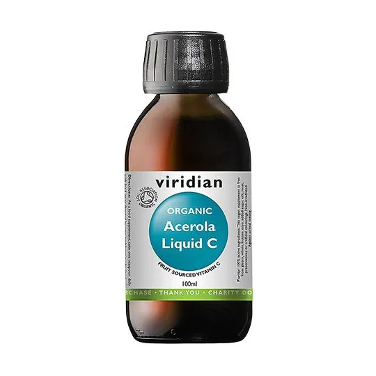 Viridian Acerola Cherry C er et økologisk og vegansk kosttilskud. Acerola flydende C vitamin fra økologiske håndplukket og frysetørret acerolakirsebær.