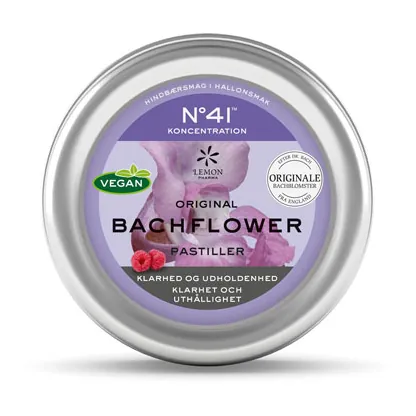 Sukkerfri pastiller med akaciesaft (Gummi Arabicum) og originale Bachblomster essenser. Med hindbærsmag. Indeholder sødemiddel.