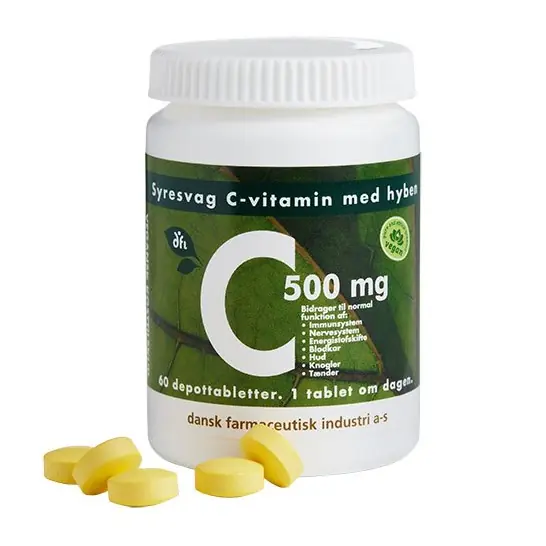 C-vitamin med hyben, indeholder 500 mg C-vitamin i depotform, således at vitaminerne frigives i kroppen over ca. 8 timer. – Vitamin C bidrager til immunsys…