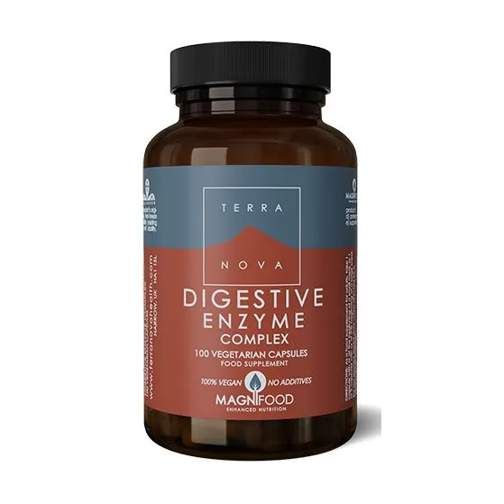 Kosttilskud med bl.a. fennikelfrø og grøn byg græspulver fra Terranova. Fordøjelse enzymer.