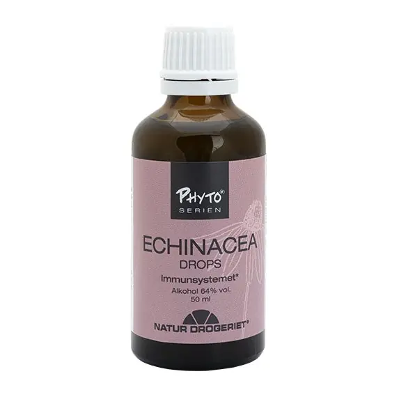 Natur-Drogeriets echinacea-dråber er fremstillet af udtræk, hvor der dels bruges friske blomster, blade og stængler fra havepurpursolhat, dels den tørrede rod fra smalbladet purpursolhat.