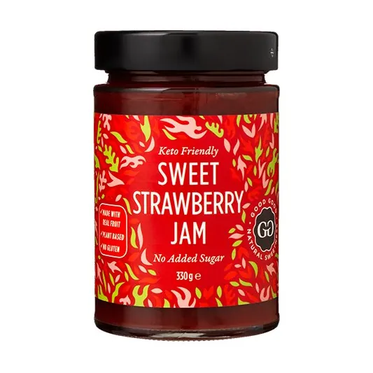 Sweet Strawberry Jam er en jordbærmarmelade af naturlig oprindelse sødet med stevia. Med en dejlig smag af jordbær er den perfekt til dine toast, desserter, kager eller lige til det, som du kan forestille dig, du gerne vil bruge jordbær marmelade til. Der er mere end 50 % jordbær i marmeladen. Ikke tilsat sukker, men sødet med stevioglykosider og erythritol.