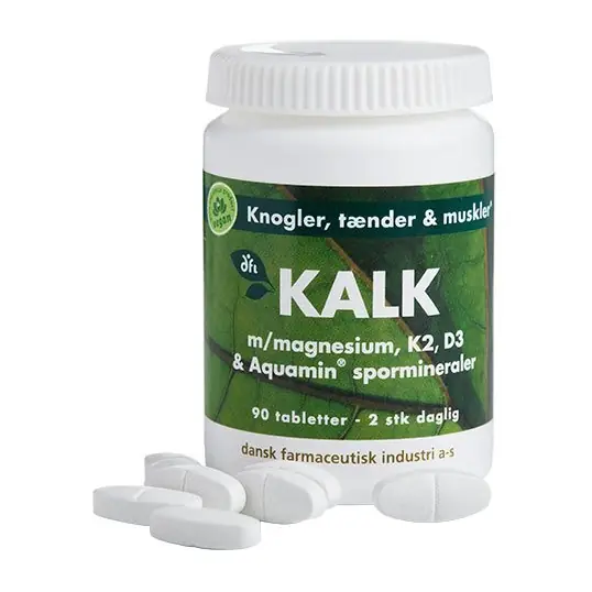 KALK m/magnesium, K2 og D3 og aquamin spormineraler.