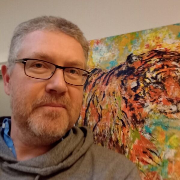 Udstillingen “Tigere og Buddhaer” trækker tråde til hans nyudgivne roman Maya, som foregår i Indien – et land, der også inspirerer hans billedverden. Her mødes spiritualitet, styrke og skønhed i et farverigt og meditativt univers, hvor både det vilde og det stille får plads.