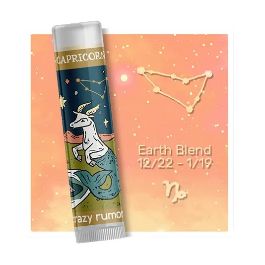 Vegansk læbepomade med stjernetegnet stenbuk. Med blødgørende økologisk sheasmør og beroligende jojobaolie. Denne læbepomade er ikke olieagtig, tynd eller voksagtig, bare den perfekte blanding af veganske og plantebaserede ingredienser.