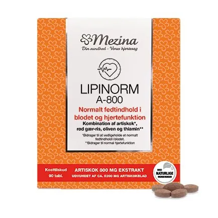 Lipinorm A-800 indeholder en kombination af artiskok, rød gær-ris, oliven og thiamin.