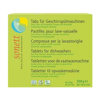 Sonett opvasketabs absorberer fugt og har derfor brug for en beskyttende folie. Den PE-beskyttende folie i fødevarekvalitet, som omslutter opvasketabletten, kan afleveres på din lokale genbrugsstation og blive genanvendt, hvilket Sonett betragter som en sundere og bedre løsning for dig og vores vand. De ser ikke en vandopløselig folie som en mulig løsning, da PVA kombineret med vand, har en potentiel skadelig virkning.