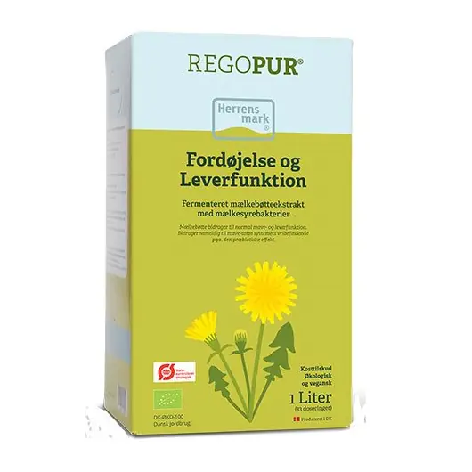 REGOPUR består af pressesaften fra økologiske blomster, blade og rødder fra mælkebøtten. Blade og blomster høstes i foråret og rødderne høstes i efteråret.