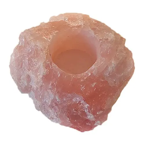 Fin fyrfadsstage i lyserød rosakvarts. Med et charmerende, råt stenlook. Rosakvarts medbringer ubetinget kærlighed, ømhed og sensualitet. Giver en beroligende, bekræftende og blød energi, samt hjælper til at hele stress og spændinger. Rosakvarts kan give gode drømme og tryghed i søvnen.