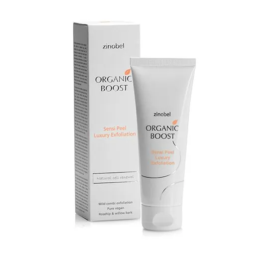 Sensi Peel Luxury Exfoliation er en kombineret mild peeling med bl.a. hyben, hvid pilebark (BHA), gurkemeje og vindruekerneekstrakt.