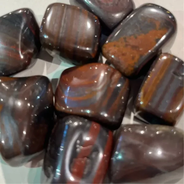 Tigerjern er en sten, der er kendt for sin unikke kombination af mineraler og de dermed forbundne energier. Her er nogle af de mest fremtrædende kendetegn: