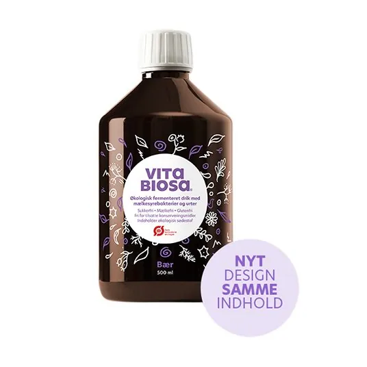 Vita Biosa Bær er en økologisk fermenteret drik med 8 kulturer af bifido- og mælkesyrebakterier, organiske syrer, ekstrakt fra 19 urter og med et strejf af bær. Netop denne kombination gør Vita Biosa til noget helt unikt.