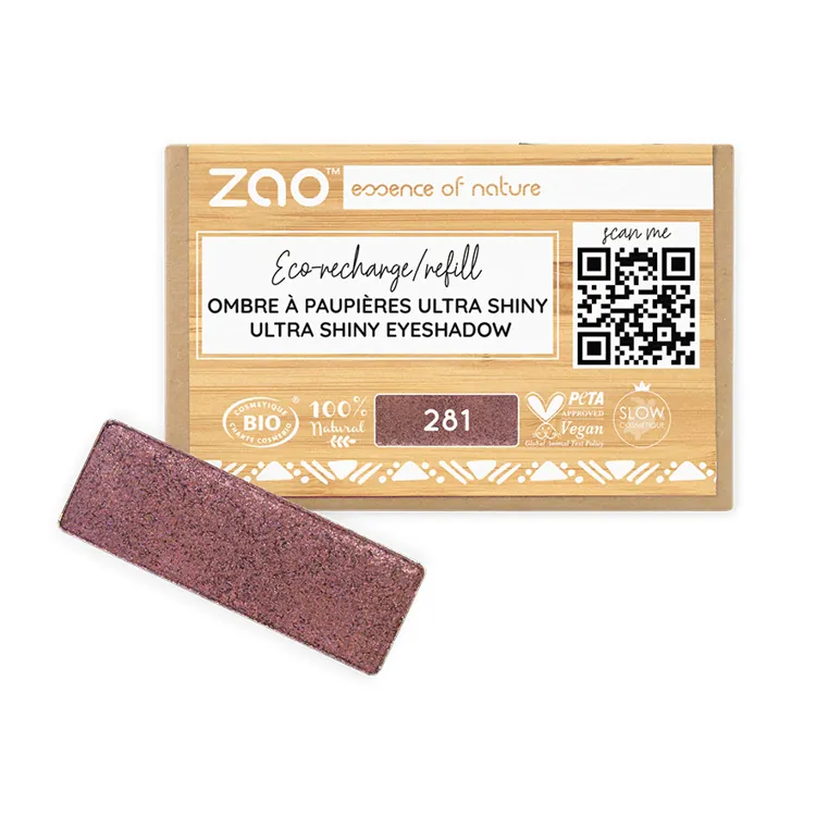 Økologisk øjenskygge fra det franske mærke ZAO. Øjenskyggen indeholder nærende ingredienser, herunder økologisk hørfrøolie, som er rig på vitaminer og omega-6 og omega-3-fedtsyrer. Den økologiske øjenskygge er, ligesom alle andre produkter fra ZAO, fri for miljøskadelige stoffer, hormonforstyrrende stoffer og allergener